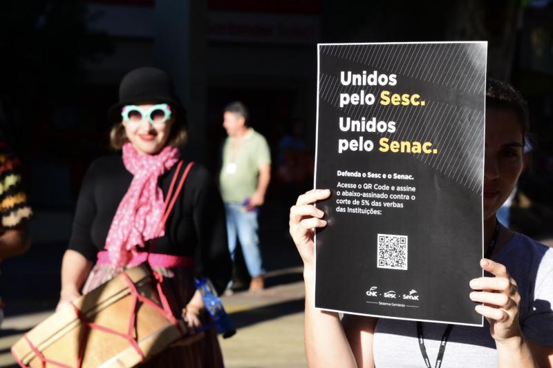 Trabalhadores das instituições, bem como frequentadores, alunos, artistas e parceiros da população em geral se juntaram para percorrer o calçadão central de Prudente para, ao mesmo tempo em que levavam números circenses e artísticos, sensibilizar o público e os trabalhadores do comércio sobre o projeto e as consequências para as ações de Sesc e Senac caso ele seja aprovado.