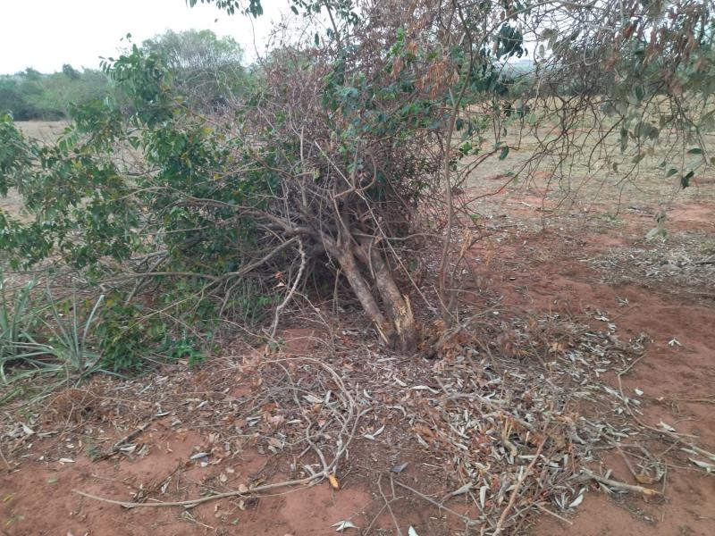 Em fiscalização no imóvel nesta quarta-feira, uma equipe constatou o corte de exemplares da espécie leiteiro, cujos troncos originais foram localizados com marcas de golpes de machado e emprego de motosserra. A