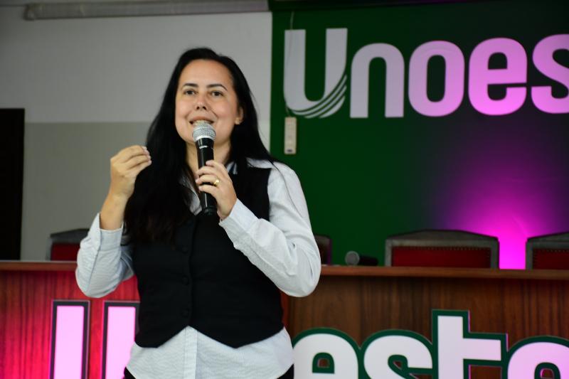 Foto: Homéro Ferreira - Vereadora Sara Lopes (União Brasil) em pronunciamento na maior premiação de atividades de extensão e ação comunitária, no 30º Enepe, quinta-feira, no campus 2 da Unoeste, em Prudente.