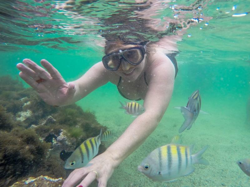Elisete Mesquita, da Koemtur, mergulha nas piscinas naturais de Maragogi, em Maceió