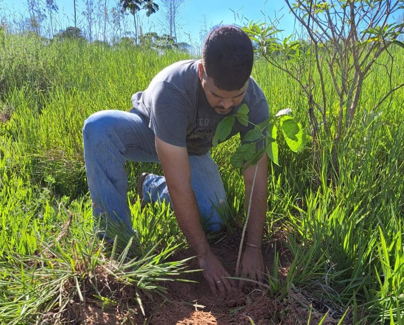 Foram plantadas 40 mudas de espécies nativas – ipê-roxo, ipê-rosa, paineira e pau-d’alho – em APP (Área de Preservação Permanente), localizada no Sítio Bom Sossego 2, de propriedade de Edilson Ferreira da Silva.