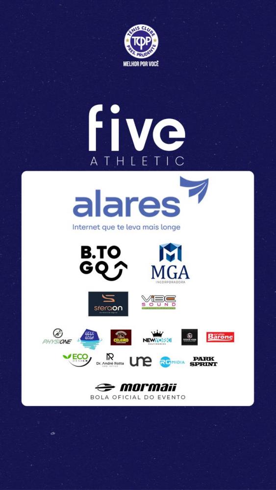 Com a presença de atletas profissionais como Botta, Léo Trator, Maguebinha e Mandela, o 1º Torneio Five Athletic – Alares de Futevôlei do TCPP (Tênis Clube de Presidente Prudente), realizado no último fim de semana no complexo de areia do clube, registrou sucesso absoluto em participação, organização e estrutura. Durante três dias, o público acompanhou disputas intensas e emocionantes nas categorias Iniciante, Aprendiz, Misto Livre, A+B, Misto Aprendiz e Master.