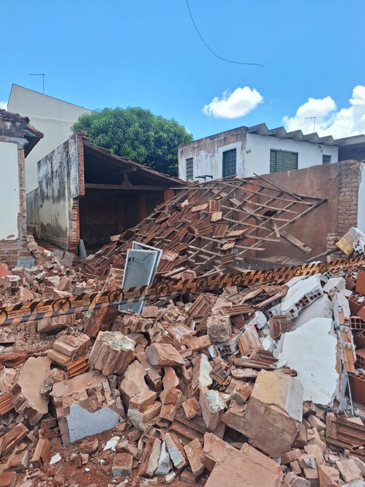 A equipe municipal realizou ainda vistoria no imóvel vizinho atingido, não sendo constatado risco estrutural adicional. A moradora foi orientada a não se aproximar do muro de divisa dos fundos, como medida preventiva.