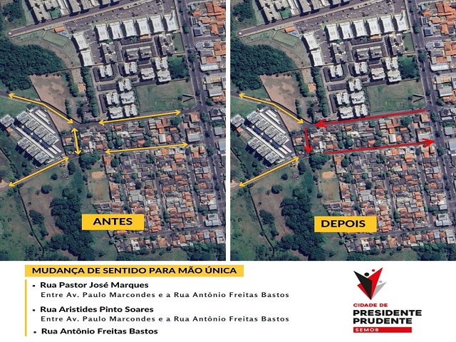 A Semob (Secretaria Municipal de Mobilidade Urbana e Cooperação em Segurança Pública) deu início ao processo de alteração de sentido em ruas localizadas no Parque Bandeirantes e que dão acesso à Avenida Paulo Marcondes, em Presidente Prudente. Com isso, passarão de mão dupla para sentido único.