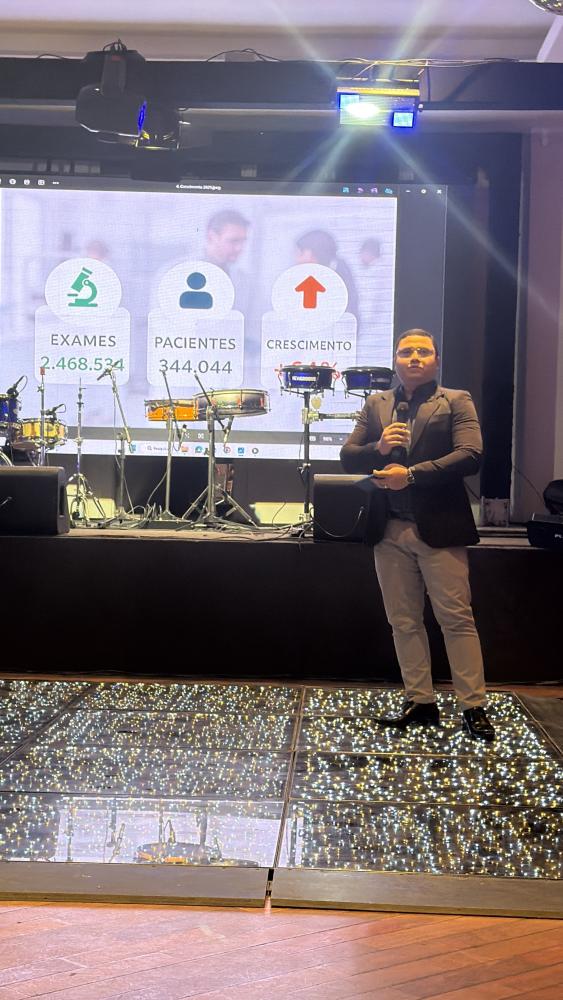 Um dos momentos mais impactantes da noite foi a apresentação dos resultados operacionais do ano. O executivo João Lucas subiu ao palco para revelar marcas que impressionaram os presentes. Em 2025, o Unilab alcançou o número recorde de mais de 2,4 milhões de exames realizados, atendendo a um contingente superior a 344 mil pacientes.