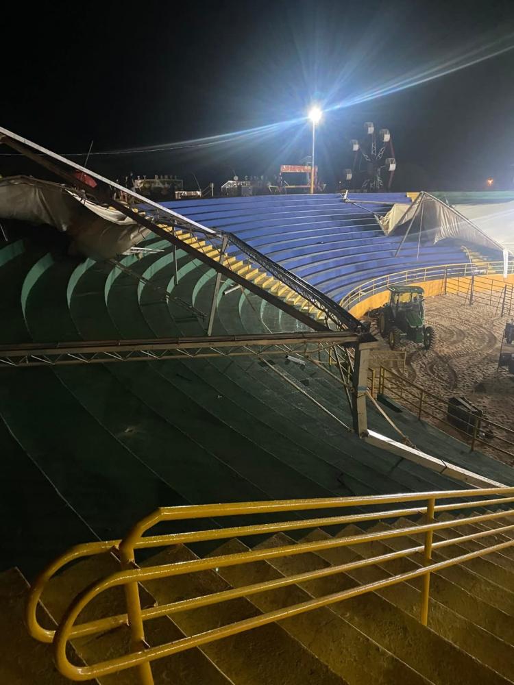 Apesar da destruição, não houve registro de feridos. Equipes do Corpo de Bombeiros, Defesa Civil e da organização do evento estiveram no local, logo após o ocorrido para avaliar os danos e garantir a segurança.