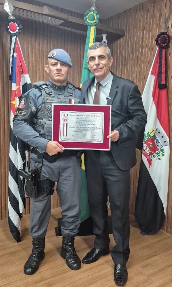 A entrega do título ocorreu em sessão solene na noite de quarta-feira (5). Atualmente, o homenageado atua no 8º Baep (Batalhão de Ações Especiais de Polícia), junto ao CPI-8 (Comando de Policiamento do Interior), em Presidente Prudente.